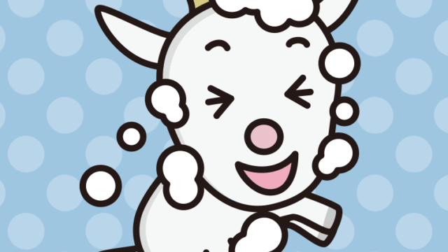 【キャラクターフリー素材】体を洗うヤギちゃんのイラスト