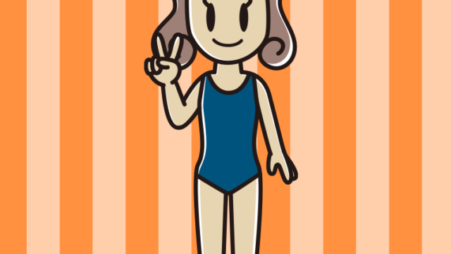 【フリー素材】ピースをするスクール水着の女性のイラスト