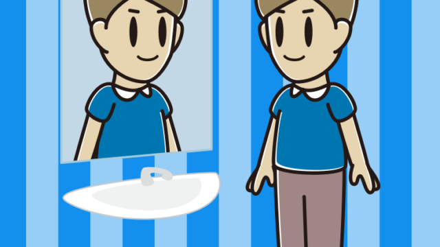 【フリー素材】鏡を見る男性のイラスト