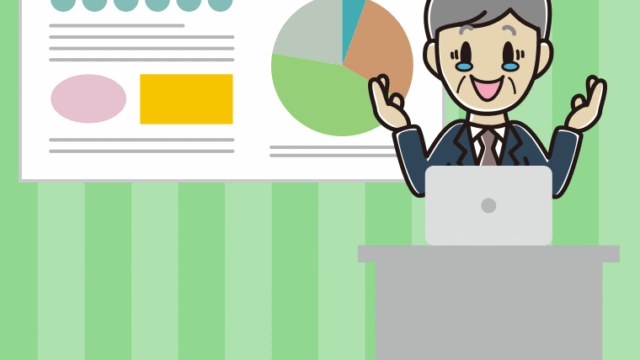 【ビジネスフリー素材】プレゼンでジーンとする男性会社員のイラスト