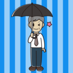 【ビジネスフリー素材】傘をさしてウインクする男性会社員のイラスト 2024.09.20 ビジネスシリーズ ponkotsu 【FREE ILLUSTRATIONS】かわいい無料イラスト素材なら「ポンコツイラストクラブ」