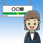 【ビジネスフリー素材】駅のホームでウインクする年配女性会社員(クールビズ)のイラスト 2025.07.05 ビジネスシリーズ ponkotsu 【FREE ILLUSTRATIONS】かわいい無料イラスト素材なら「ポンコツイラストクラブ」