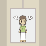 【ビジネスフリー素材】エレベーターでマスクをする女性会社員のイラスト 2025.11.03 ビジネスシリーズ ponkotsu 【FREE ILLUSTRATIONS】かわいい無料イラスト素材なら「ポンコツイラストクラブ」