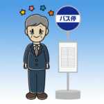 【ビジネスフリー素材】バス停で苦笑いする男性会社員のイラスト 2025.12.23 ビジネスシリーズ ponkotsu 【FREE ILLUSTRATIONS】かわいい無料イラスト素材なら「ポンコツイラストクラブ」