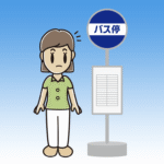 【ビジネスフリー素材】バス停で何かに気付く年配女性会社員のイラスト 2025.09.02 ビジネスシリーズ ponkotsu 【FREE ILLUSTRATIONS】かわいい無料イラスト素材なら「ポンコツイラストクラブ」