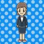 【ビジネスフリー素材】駅のホームでウインクする年配女性会社員(カジュアル)のイラスト 2025.07.05 ビジネスシリーズ ponkotsu 【FREE ILLUSTRATIONS】かわいい無料イラスト素材なら「ポンコツイラストクラブ」