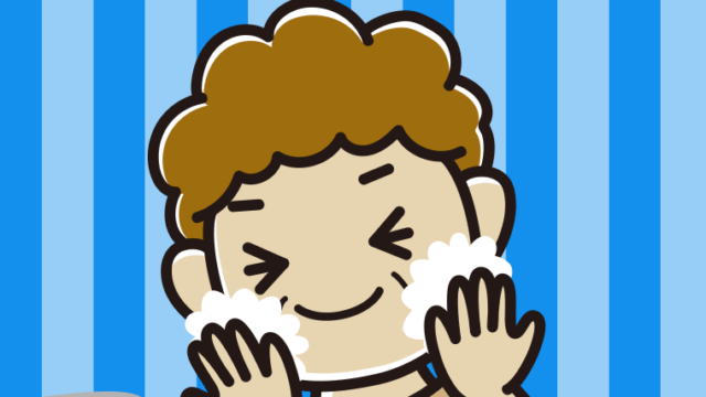 【フリー素材】洗顔フォームで顔を洗うおばさんのイラスト